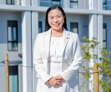 看護学部原朱美教授の近大人スナップ。